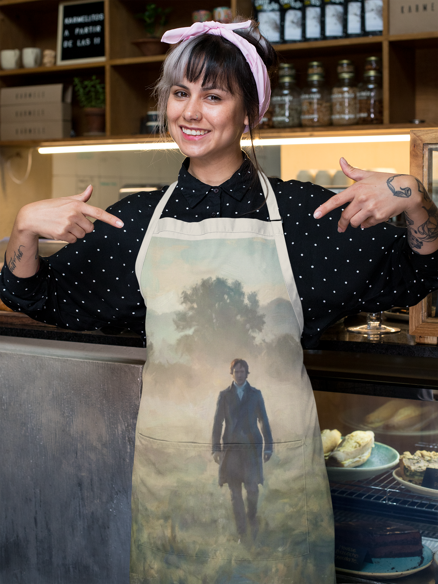 Bring a little Pemberley drama to the most ordinary of tasks. This strap apron features the same romantic illustration used on our playing cards: Mr. Darcy walking through the morning mist—quiet, composed, and entirely unforgettable. It’s a subtle literary nod that turns cooking, baking, and tea-making into something that feels… just slightly more like a scene.